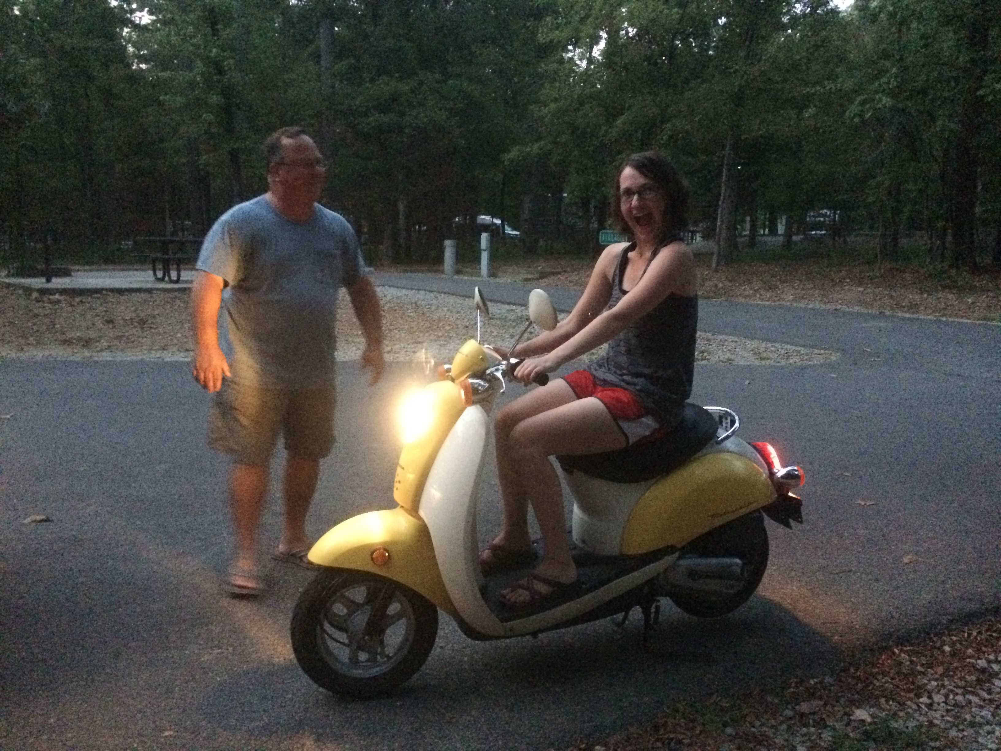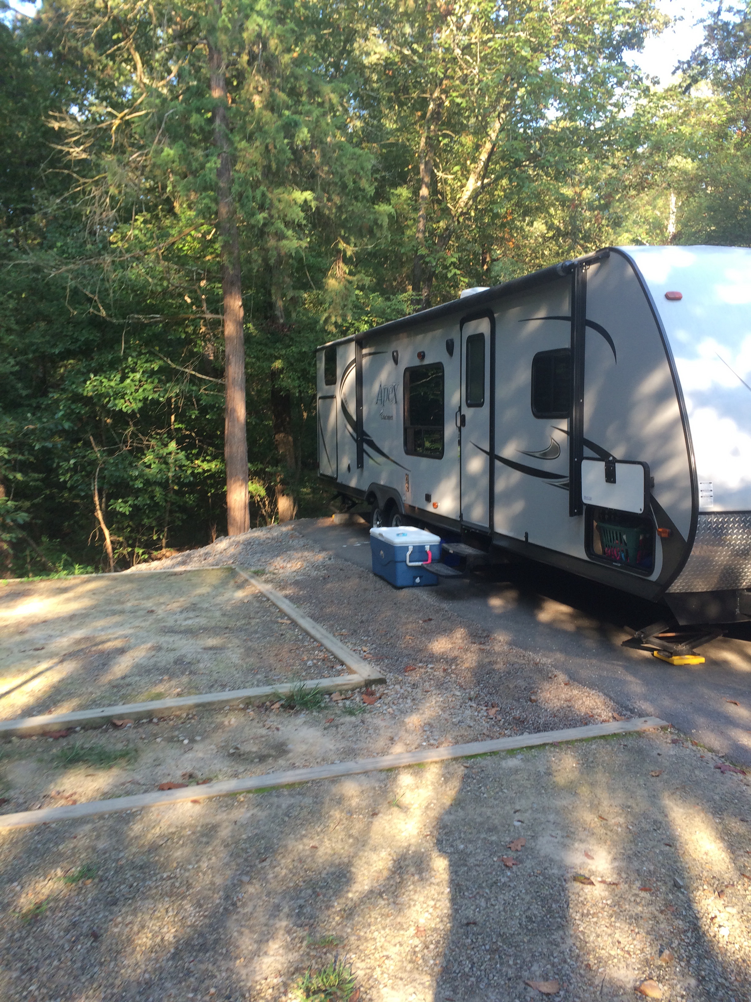 We headed to Crater of Diamonds State Park in search of diamonds to fuel our gypsy lifestyle. It was a good plan, kind of like playing the lottery, but the digging, sifting, and searching was a lot more entertaining. We decided to spend two nights enjoying the park on our way to Texas and spending the days searching for diamonds. We had a great time but man was it hot. Our first night we had a great experience meeting up with fellow travelers, Kenny and Laura, from RVilliage. Kenny was even so gracious to let me test out his scooter. When we arrived we discovered our site was already occupied by a black window and her millions of soon to be babies. We quickly had them evicted and went on to enjoy our day. The second day we bought some steaks to grill and built a nice fire. The campsite was top notch including privacy, a grill and fire pit.