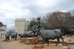 We managed to arrive at the Waco Historic Suspension Bridge just before the rain and cold took over the remainder of our stay. We were greeted with an amazing group of bronze sculptures located in the Indian Spring Park. The collection features three cowboys one white, one Hispanic, one Black and 25 cows, talk about an unexpected find, the Chisholm Trail Tribute is a must see.